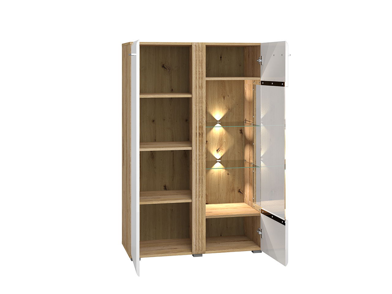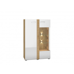Vitrína ADAGIO 03P - dvoudvířková, částečně prosklená s policemi. Ke skleněným policím si můžete doobjednat LED osvětlení