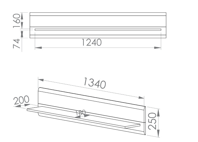 Rozměr: š. 134 cm / v. 25 cm / hl. 20 cm