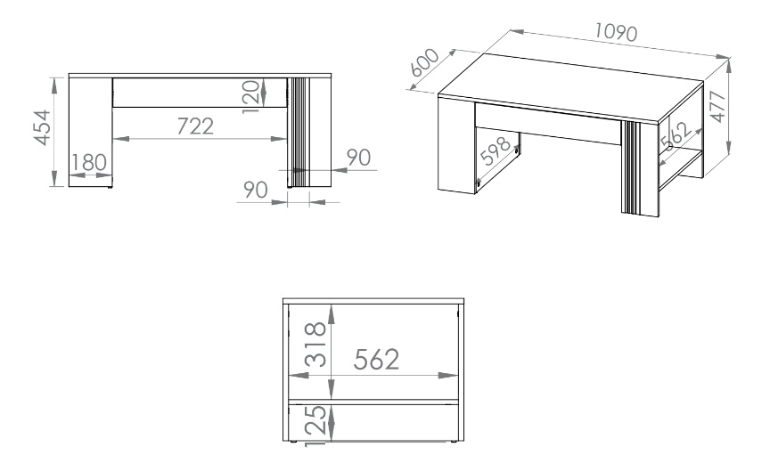 Rozměr: š. 109 cm / v. 48 cm / hl. 60 cm