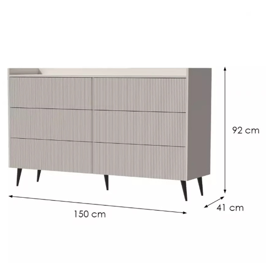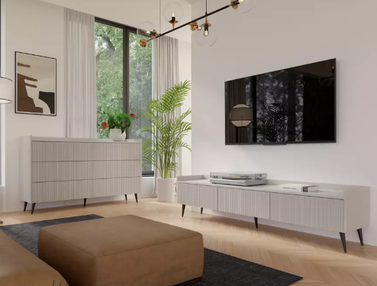 Systémový nábytek ADEMO je elegantní a funkční nábytek pro každý obývací pokoj. Korpus nábytku je vyroben z kvalitního lamina, čelní plochy jsou z MDF s drážkováním. Jedinečný vzhled a vysoká praktičnost obývacího nábytku ADEMO se vyznačují jedinečným stylem a originalitou. Drážkovaný design v kombinaci s atraktivní barvou kašmír mu dodává moderní a elegantní vzhled. Tento sektor do obývacího pokoje je perfektním řešením pro Vás, kdo hledáte vizuálně atraktivní prvky interiérového designu. Všestranný nábytek s nádechem sofistikovanosti s drážkovanými čely se perfektně hodí do moderního interiéru. Jeho minimalistické, hladké linie nezahlcuje prostor a umožňují všestranné uspořádáni obytného prostoru. S obývacím systémovým nábytkem ADEMO si můžete vytvořit elegantní a hřejivý interiér.
