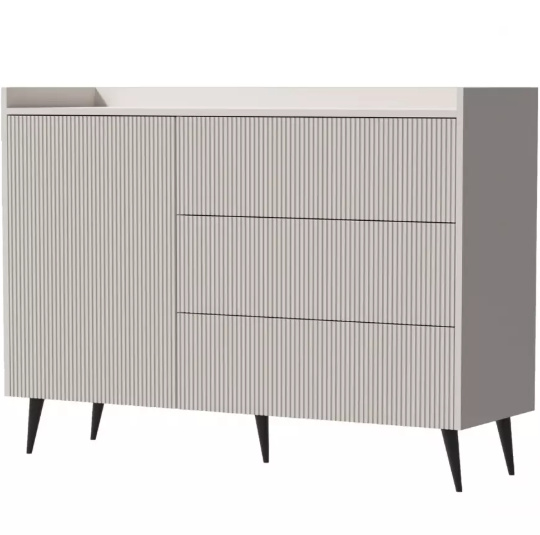 Systémový nábytek ADEMO je elegantní a funkční nábytek pro každý obývací pokoj. Korpus nábytku je vyroben z kvalitního lamina, čelní plochy jsou z MDF s drážkováním. Jedinečný vzhled a vysoká praktičnost obývacího nábytku ADEMO se vyznačují jedinečným stylem a originalitou. Drážkovaný design v kombinaci s atraktivní barvou kašmír mu dodává moderní a elegantní vzhled. Tento sektor do obývacího pokoje je perfektním řešením pro Vás, kdo hledáte vizuálně atraktivní prvky interiérového designu. Všestranný nábytek s nádechem sofistikovanosti s drážkovanými čely se perfektně hodí do moderního interiéru. Jeho minimalistické, hladké linie nezahlcuje prostor a umožňují všestranné uspořádáni obytného prostoru. S obývacím systémovým nábytkem ADEMO si můžete vytvořit elegantní a hřejivý interiér.
