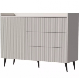 Komoda 4 ze systému ADEMO - kombinovaná s plnými dvířky, policemi a šuplíky, drážkované čelní plochy
