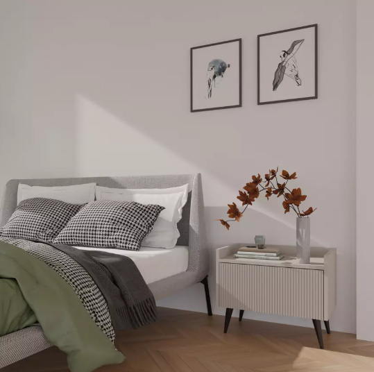 Noční stolek 8 ze systému ADEMO - s výklopným drážkovaným dvířkem a otevřenou odkládací nikou pod stolovou deskou