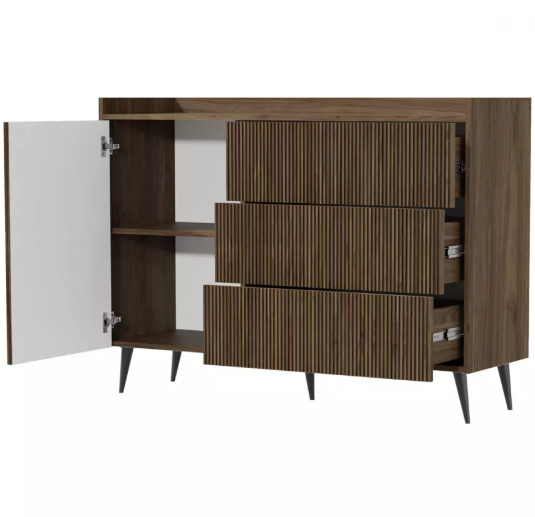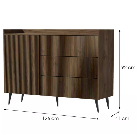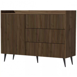Systémový nábytek ADEMO je elegantní a funkční nábytek pro každý obývací pokoj. Korpus nábytku je vyroben z kvalitního lamina, čelní plochy jsou z MDF s drážkováním. Jedinečný vzhled a vysoká praktičnost obývacího nábytku ADEMO se vyznačují jedinečným stylem a originalitou. Drážkovaný design v kombinaci s krásnou barvou ořechu mu dodává moderní a elegantní vzhled. Tento sektor do obývacího pokoje je perfektním řešením pro Vás, kdo hledáte vizuálně atraktivní prvky interiérového designu. Všestranný nábytek s nádechem sofistikovanosti s drážkovanými čely se perfektně hodí do moderního interiéru. Jeho minimalistické, hladké linie nezahlcuje prostor a umožňují všestranné uspořádáni obytného prostoru. S obývacím systémovým nábytkem ADEMO si můžete vytvořit elegantní a hřejivý interiér.