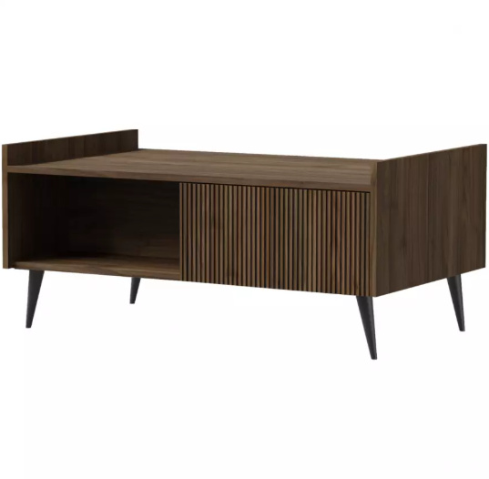 Konferenční stolek 9 ze systému ADEMO - s výklopnými drážkovanými dvířky a otevřenou odkládací nikou pod stolovou deskou