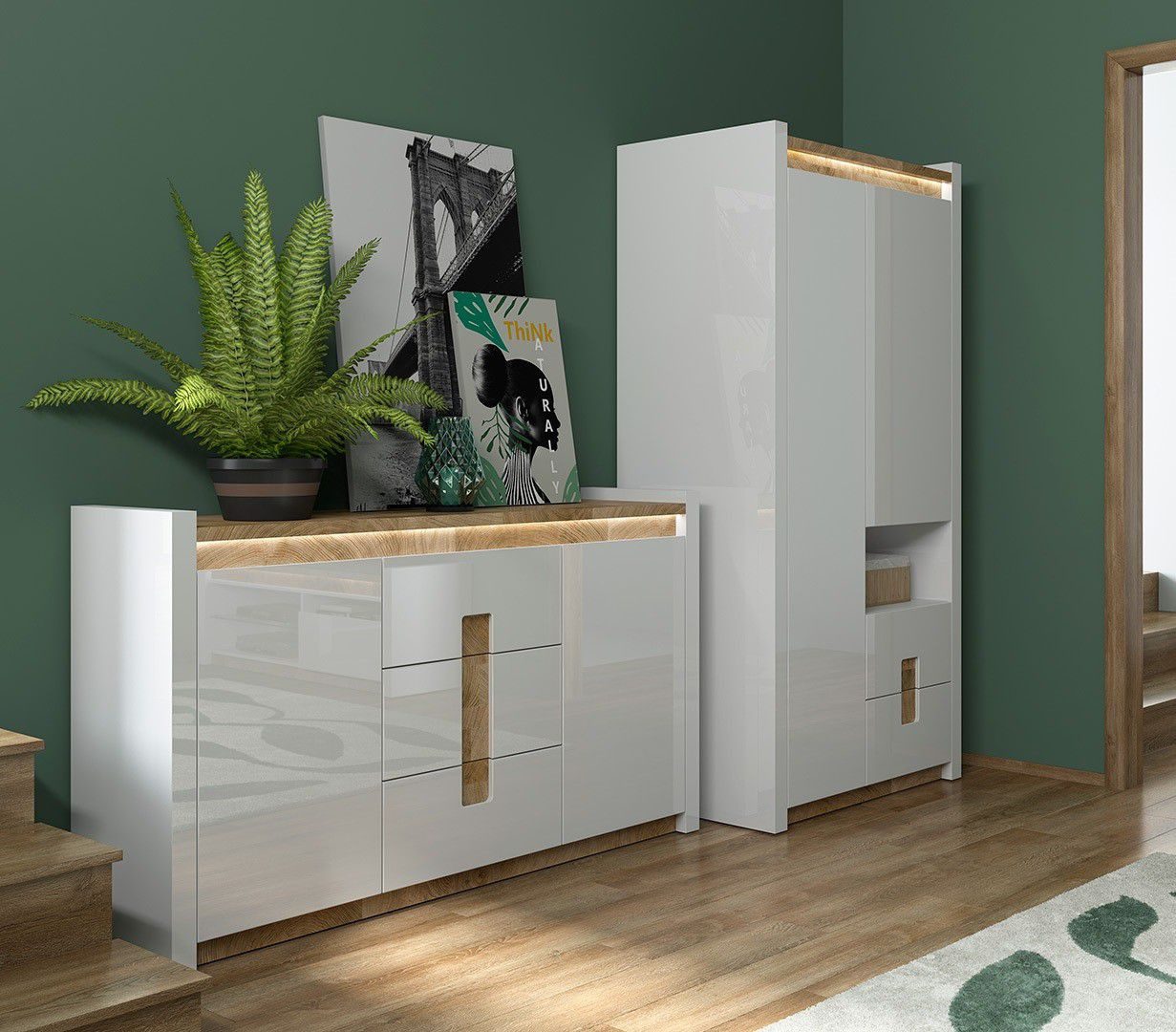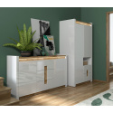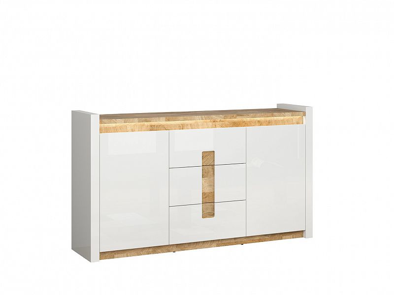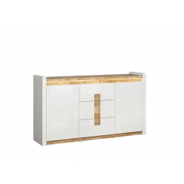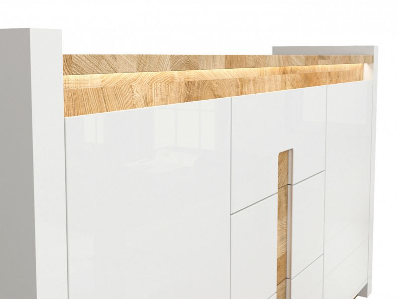 Sektor ALAMEDA je díky bílé barvě ve vysokém lesku a elegantní kombinaci s dubem westminster jedinečný systémový nábytek k zařízení moderního obývacího pokoje. Velmi luxusním dojmem působí originální detaily a zesílené vrchní a boční desky. Tento atraktivní nábytek se stane originální součástí Vašeho obývacího pokoje. Vysoký komfort užívání zajišťují panty s tichým dovíráním a LED osvětlení pod horní deskou.