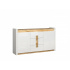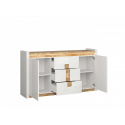 Modulový nábytek ALAMEDA je vyroben z kvalitního lamina, boční a horní desky jsou zesíleny. Korpus je v bílý, dvířka v bílém vysokém lesku, čela šuplíků v bílém lesku s detaily v dekoru dub westmister, horní deska a spodní lišta jsou rovněž v dubu westmister. Pod horní deskou je umístěno efektní LED osvětlení.