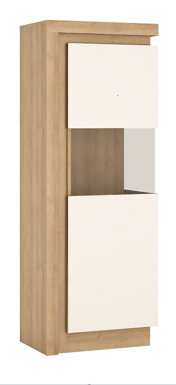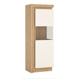 Vitrína - jednodvéřová, částečně prosklená s policemi