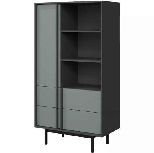 ALSY systémový nábytek do obývacího pokoje. Vkusný, jednoduchý, elegantní. Moderní nábytek do obývacího pokoje ALSY vyniká nadčasovým, minimalistickým designem, který dokonale splňuje náročné interiérové požadavky. Hladké linie a jedinečná kombinace antracitové barvy a aloe vera vytvářejí silný dekorativní prvek. Široké možnosti uspořádání, které tato sada nábytku do obývacího pokoje nabízí, jí dodávají všestranný a univerzální charakter, který se hodí do moderních i klasických interiérů. Výběr nábytku není určen pouze jeho vzhledem, ale také jeho funkčností. Moderní sektorový nábytek do obývacího pokoje ALSY je vyroben z vysoce kvalitních materiálů, což zaručuje jeho trvanlivost, pevnost a vysokou odolnost proti poškození. Poskytuje dostatek úložného prostoru, pomáhá optimalizovat a pohodlně organizovat prostor a přizpůsobuje se Vašim individuálním potřebám.