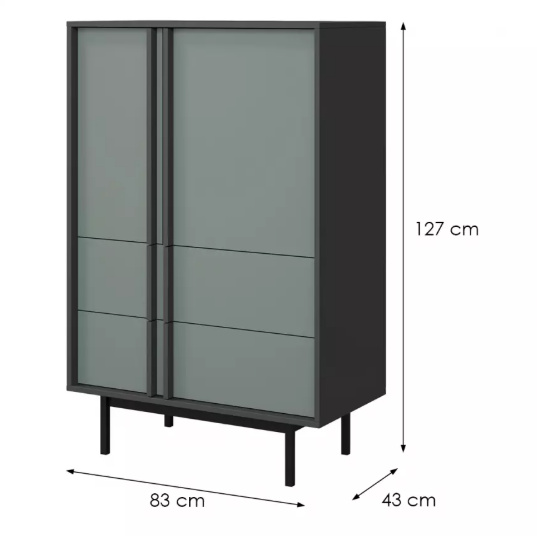 Vysoká komoda 5 ze systému ALSY - ve spodní části dva šuplíky, nad nimi plná dvoudvířka, s policí