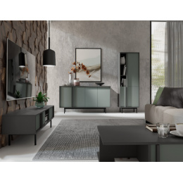 ALSY systémový nábytek do obývacího pokoje. Vkusný, jednoduchý, elegantní. Moderní nábytek do obývacího pokoje ALSY vyniká nadčasovým, minimalistickým designem, který dokonale splňuje náročné interiérové požadavky. Hladké linie a jedinečná kombinace antracitové barvy a aloe vera vytvářejí silný dekorativní prvek. Široké možnosti uspořádání, které tato sada nábytku do obývacího pokoje nabízí, jí dodávají všestranný a univerzální charakter, který se hodí do moderních i klasických interiérů. Výběr nábytku není určen pouze jeho vzhledem, ale také jeho funkčností. Moderní sektorový nábytek do obývacího pokoje ALSY je vyroben z vysoce kvalitních materiálů, což zaručuje jeho trvanlivost, pevnost a vysokou odolnost proti poškození. Poskytuje dostatek úložného prostoru, pomáhá optimalizovat a pohodlně organizovat prostor a přizpůsobuje se Vašim individuálním potřebám.