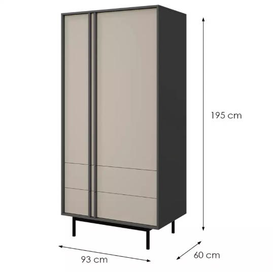 Šatní skříň 1 ze systému ALSY - dvoudveřová se dvěma šuplíky a šatní tyčí