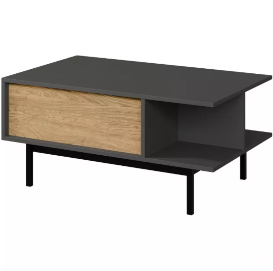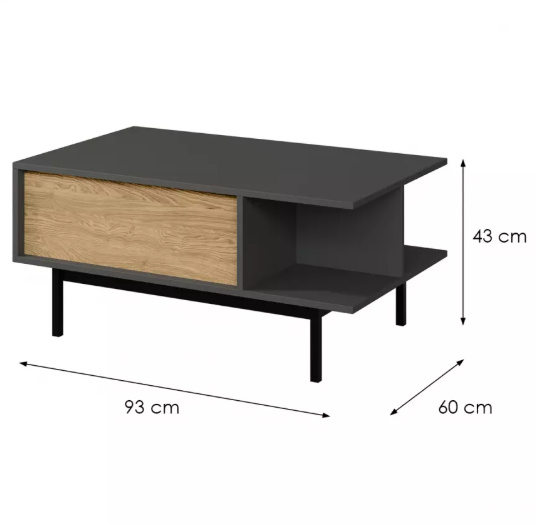 ALSY systémový nábytek do obývacího pokoje. Vkusný, jednoduchý, elegantní. Moderní nábytek do obývacího pokoje ALSY vyniká nadčasovým, minimalistickým designem, který dokonale splňuje náročné interiérové požadavky. Hladké linie a jedinečná kombinace antracitové barvy a olejovaný dub vytvářejí silný dekorativní prvek. Široké možnosti uspořádání, které tato sada nábytku do obývacího pokoje nabízí, jí dodávají všestranný a univerzální charakter, který se hodí do moderních i klasických interiérů. Výběr nábytku není určen pouze jeho vzhledem, ale také jeho funkčností. Moderní sektorový nábytek do obývacího pokoje ALSY je vyroben z vysoce kvalitních materiálů, což zaručuje jeho trvanlivost, pevnost a vysokou odolnost proti poškození. Poskytuje dostatek úložného prostoru, pomáhá optimalizovat a pohodlně organizovat prostor a přizpůsobuje se Vašim individuálním potřebám.