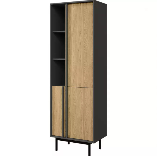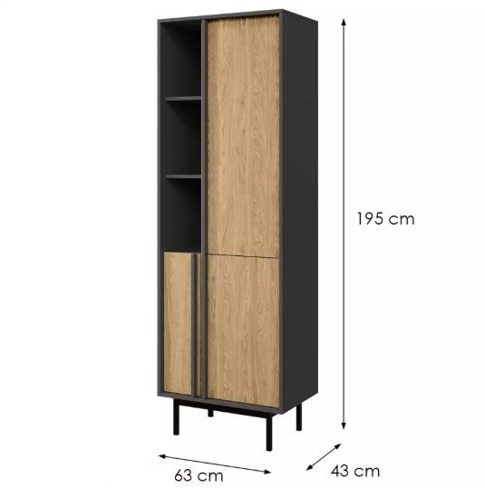 ALSY systémový nábytek do obývacího pokoje. Vkusný, jednoduchý, elegantní. Moderní nábytek do obývacího pokoje ALSY vyniká nadčasovým, minimalistickým designem, který dokonale splňuje náročné interiérové požadavky. Hladké linie a jedinečná kombinace antracitové barvy a olejovaný dub vytvářejí silný dekorativní prvek. Široké možnosti uspořádání, které tato sada nábytku do obývacího pokoje nabízí, jí dodávají všestranný a univerzální charakter, který se hodí do moderních i klasických interiérů. Výběr nábytku není určen pouze jeho vzhledem, ale také jeho funkčností. Moderní sektorový nábytek do obývacího pokoje ALSY je vyroben z vysoce kvalitních materiálů, což zaručuje jeho trvanlivost, pevnost a vysokou odolnost proti poškození. Poskytuje dostatek úložného prostoru, pomáhá optimalizovat a pohodlně organizovat prostor a přizpůsobuje se Vašim individuálním potřebám.