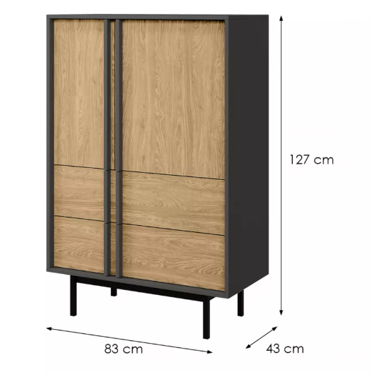 ALSY systémový nábytek do obývacího pokoje. Vkusný, jednoduchý, elegantní. Moderní nábytek do obývacího pokoje ALSY vyniká nadčasovým, minimalistickým designem, který dokonale splňuje náročné interiérové požadavky. Hladké linie a jedinečná kombinace antracitové barvy a olejovaný dub vytvářejí silný dekorativní prvek. Široké možnosti uspořádání, které tato sada nábytku do obývacího pokoje nabízí, jí dodávají všestranný a univerzální charakter, který se hodí do moderních i klasických interiérů. Výběr nábytku není určen pouze jeho vzhledem, ale také jeho funkčností. Moderní sektorový nábytek do obývacího pokoje ALSY je vyroben z vysoce kvalitních materiálů, což zaručuje jeho trvanlivost, pevnost a vysokou odolnost proti poškození. Poskytuje dostatek úložného prostoru, pomáhá optimalizovat a pohodlně organizovat prostor a přizpůsobuje se Vašim individuálním potřebám.