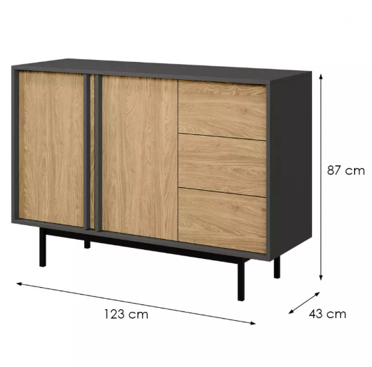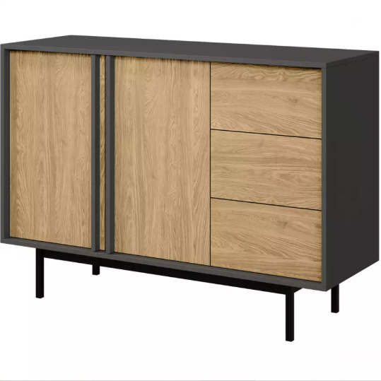 ALSY systémový nábytek do obývacího pokoje. Vkusný, jednoduchý, elegantní. Moderní nábytek do obývacího pokoje ALSY vyniká nadčasovým, minimalistickým designem, který dokonale splňuje náročné interiérové požadavky. Hladké linie a jedinečná kombinace antracitové barvy a olejovaný dub vytvářejí silný dekorativní prvek. Široké možnosti uspořádání, které tato sada nábytku do obývacího pokoje nabízí, jí dodávají všestranný a univerzální charakter, který se hodí do moderních i klasických interiérů. Výběr nábytku není určen pouze jeho vzhledem, ale také jeho funkčností. Moderní sektorový nábytek do obývacího pokoje ALSY je vyroben z vysoce kvalitních materiálů, což zaručuje jeho trvanlivost, pevnost a vysokou odolnost proti poškození. Poskytuje dostatek úložného prostoru, pomáhá optimalizovat a pohodlně organizovat prostor a přizpůsobuje se Vašim individuálním potřebám.