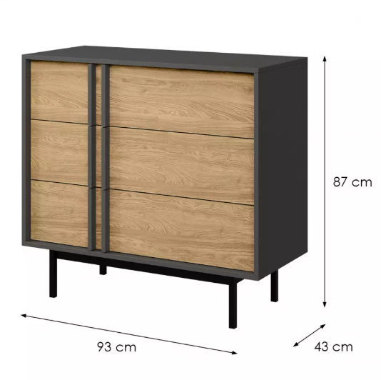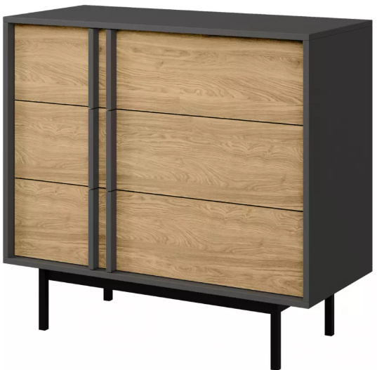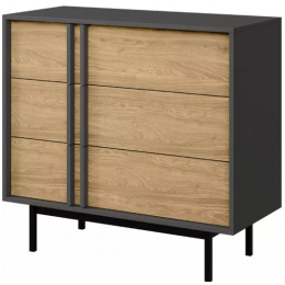 ALSY systémový nábytek do obývacího pokoje. Vkusný, jednoduchý, elegantní. Moderní nábytek do obývacího pokoje ALSY vyniká nadčasovým, minimalistickým designem, který dokonale splňuje náročné interiérové požadavky. Hladké linie a jedinečná kombinace antracitové barvy a olejovaný dub vytvářejí silný dekorativní prvek. Široké možnosti uspořádání, které tato sada nábytku do obývacího pokoje nabízí, jí dodávají všestranný a univerzální charakter, který se hodí do moderních i klasických interiérů. Výběr nábytku není určen pouze jeho vzhledem, ale také jeho funkčností. Moderní sektorový nábytek do obývacího pokoje ALSY je vyroben z vysoce kvalitních materiálů, což zaručuje jeho trvanlivost, pevnost a vysokou odolnost proti poškození. Poskytuje dostatek úložného prostoru, pomáhá optimalizovat a pohodlně organizovat prostor a přizpůsobuje se Vašim individuálním potřebám.