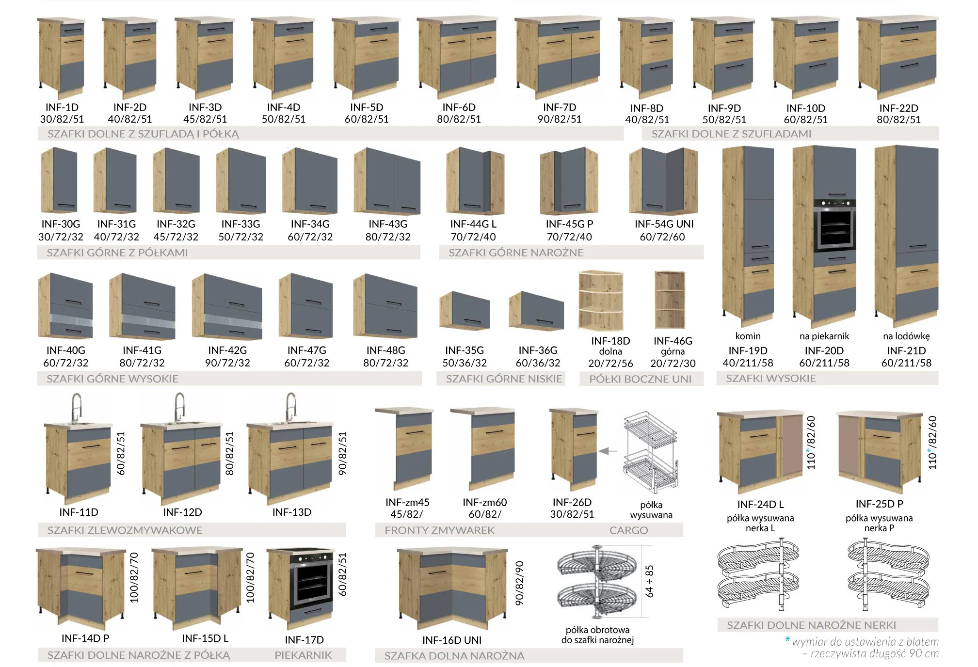 Spodní kuchyňské skříňky se dodávají bez soklu a bez pracovní desky, které si můžete vybrat z naší nabídky.