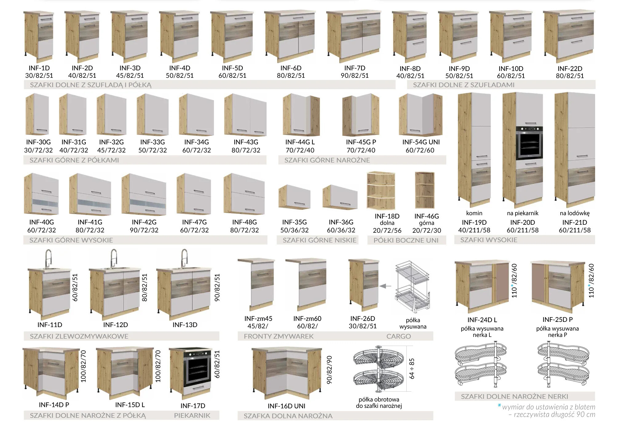 Spodní kuchyňské skříňky se dodávají bez soklu a bez pracovní desky, které si můžete vybrat z naší nabídky.
