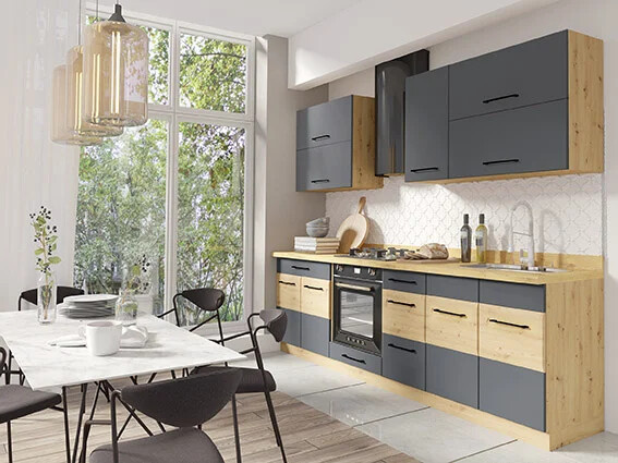 Spodní kuchyňské skříňky se dodávají bez soklu a bez pracovní desky, které si můžete vybrat z naší nabídky.