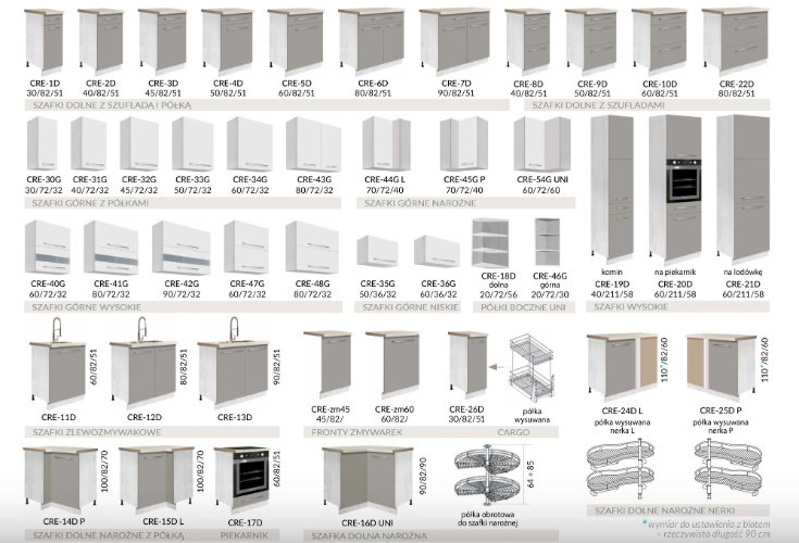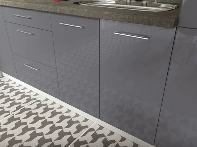 Kuchyňská linka se dodává bez soklu a bez pracovní desky, které si můžete vybrat z naší nabídky.
