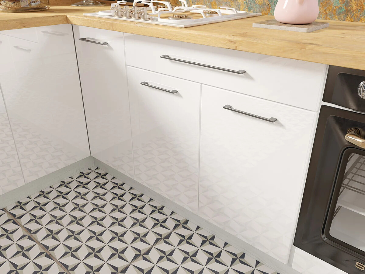 Spodní kuchyňské skříňky se dodávají bez soklu a bez pracovní desky, které si můžete vybrat z naší nabídky.