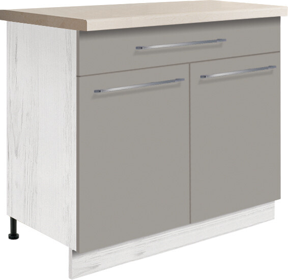 Spodní kuchyňské skříňky se dodávají bez soklu a bez pracovní desky, které si můžete vybrat z naší nabídky.
