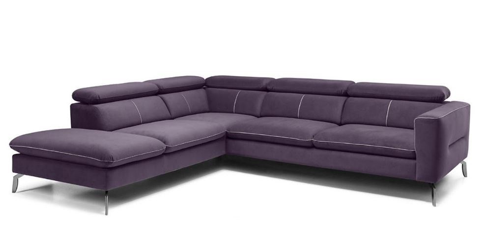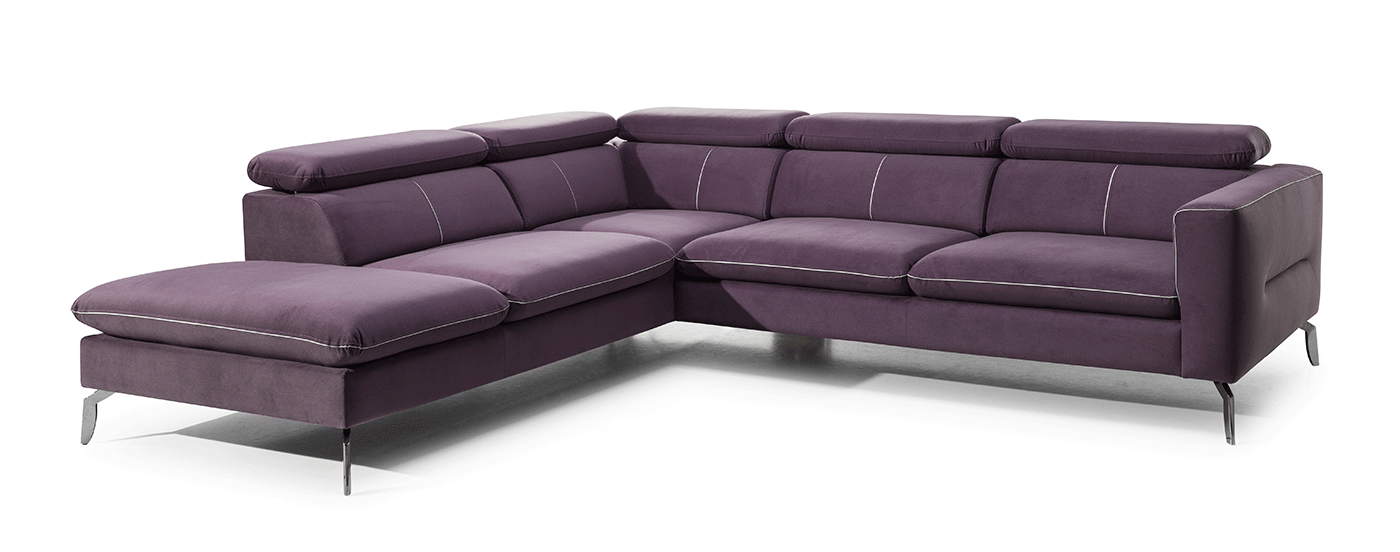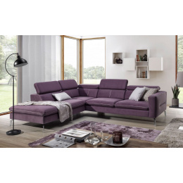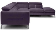 Moderní, pohodlná rohová sedací souprava. Sedačka je pevná, bez rozkladu a úp. Rohovka je vybavená moderními nastavitelnými opěrkami hlavy. Má kovové nožičky. Sedáky jsou vyplněny pružinovými vlnovci a měkkou PUR pěnou. Velký výběr potahových látek s povrchovou úpravou Aqua Clean. Sedačku můžete doplnit o taburet.