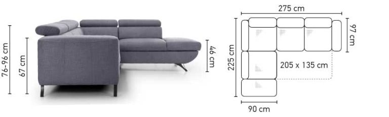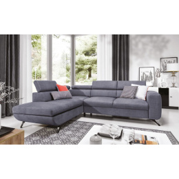 Moderní, pohodlná rohová sedací souprava. Sedačka je rozkládací s lůžkem pro denní spaní a úložným prostorem pro lůžkoviny. Rohovka je vybavená moderními nastavitelnými opěrkami hlavy. Velký výběr potahových látek s povrchovou úpravou Aqua Clean.