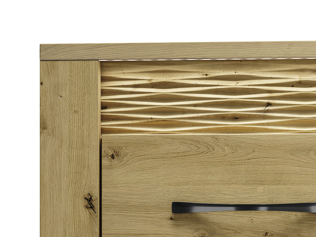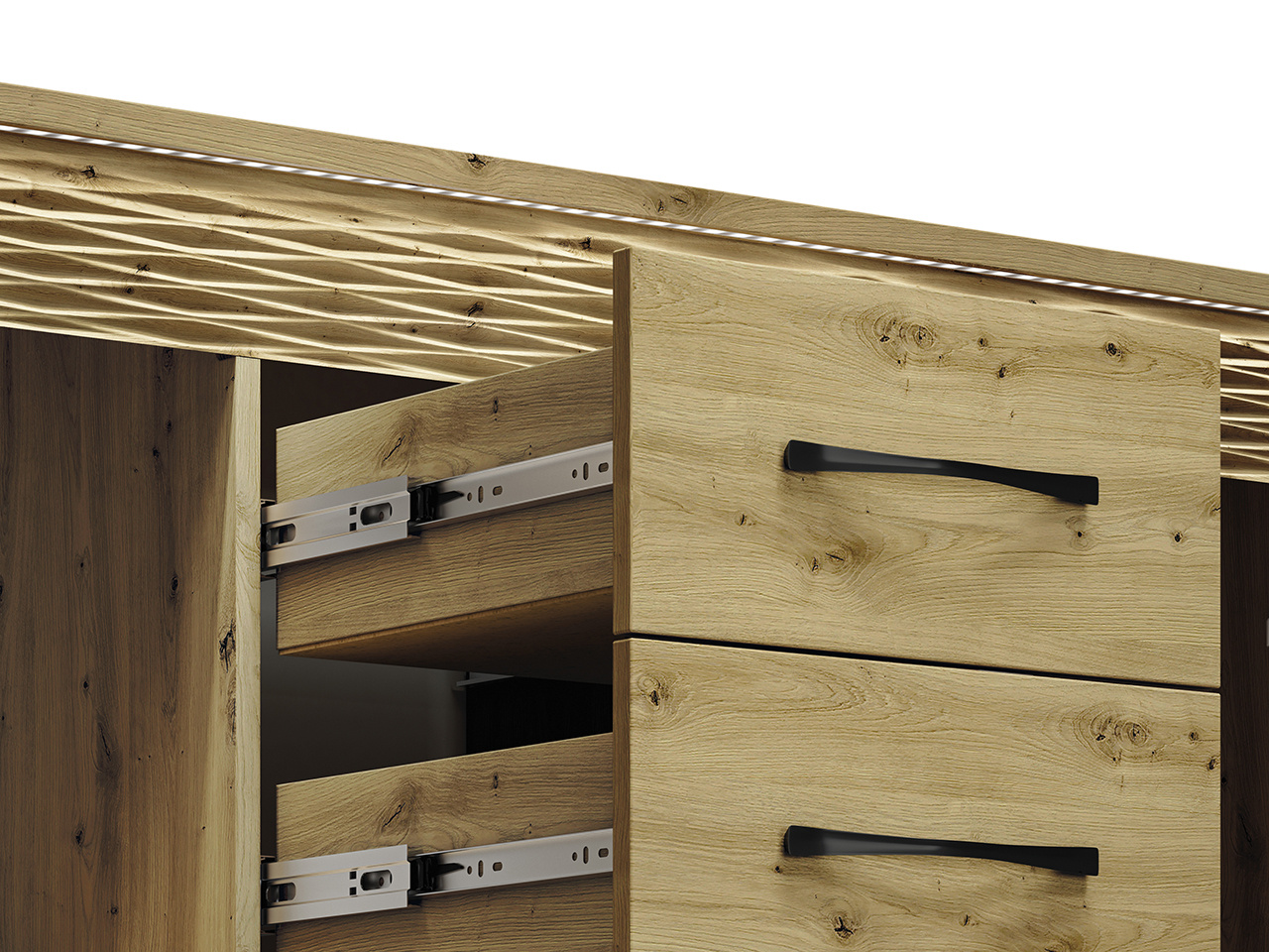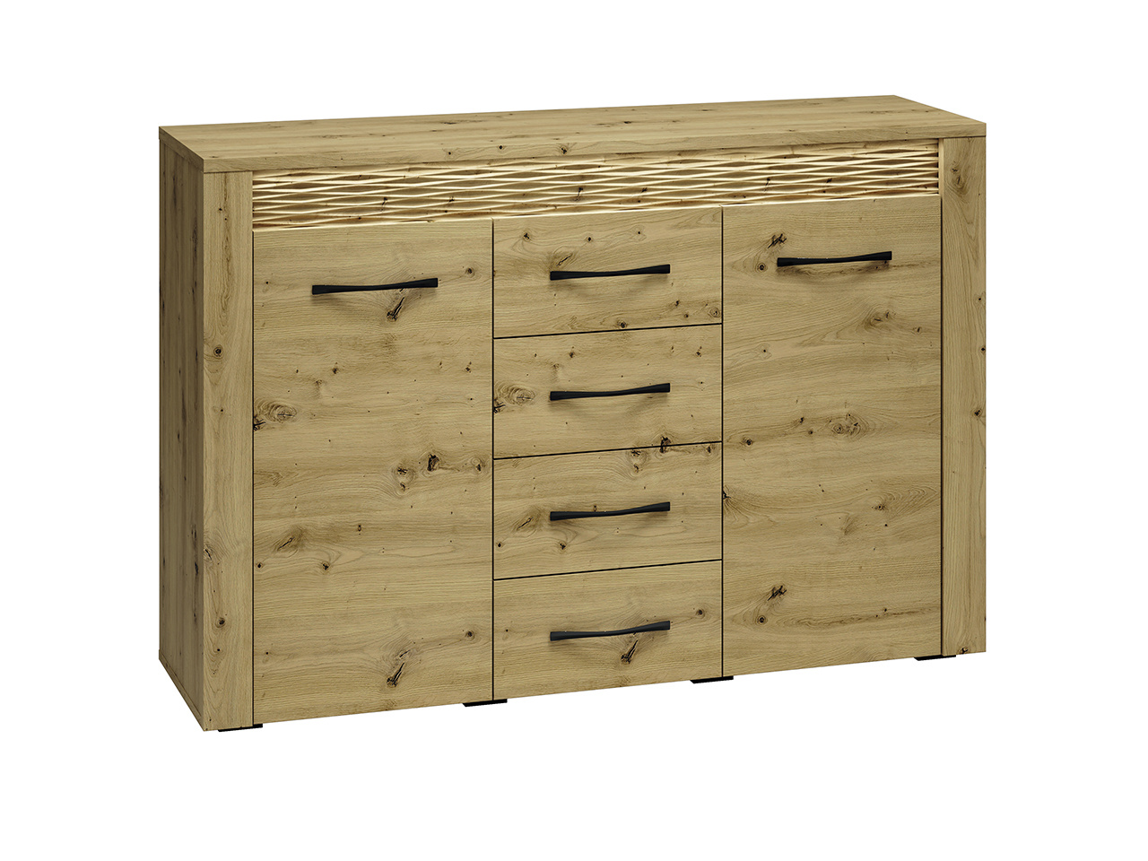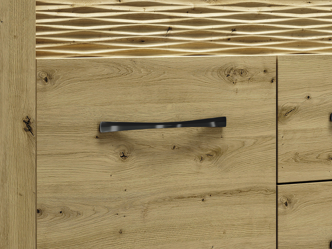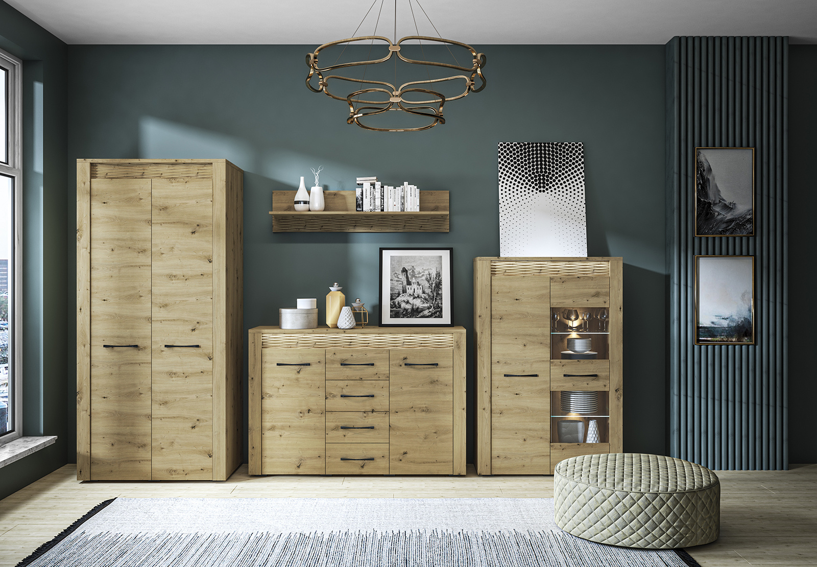 Pečlivě navržený systémový nábytek ARTIS je moderna inspirovaná přírodou. Přírodní vzor dřeva s přiznanou strukturou a výrazný vzor zdůrazňují charakter nábytku. V kombinaci s vyváženým a jednoduchým stylem je tento nábytek ideální k vytvoření originálního interiéru. Kovové úchyty v černé barvě dokonale kontrastuje s dekorem teplého dubu a podsvícená dekorativní lišta dodá Vašemu obývacímu pokoji i jídelně jedinečnou atmosféru.