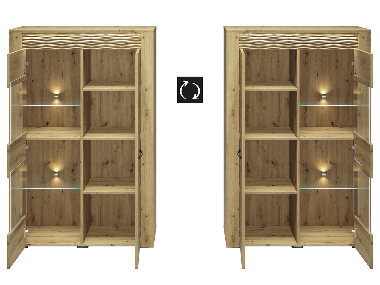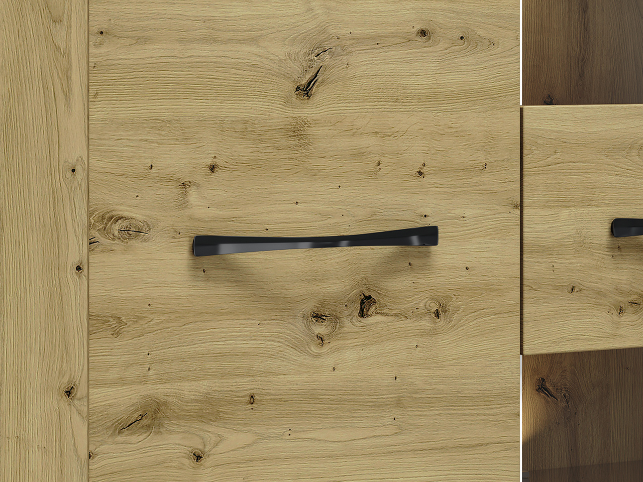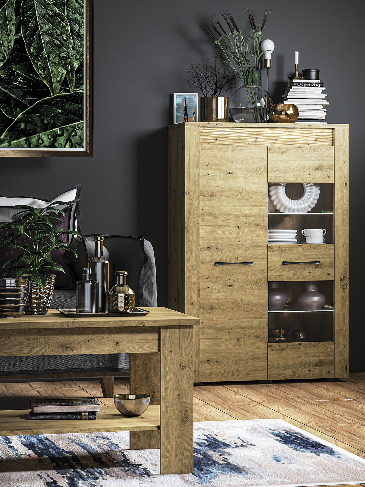 Pečlivě navržený systémový nábytek ARTIS je moderna inspirovaná přírodou. Přírodní vzor dřeva s přiznanou strukturou a výrazný vzor zdůrazňují charakter nábytku. V kombinaci s vyváženým a jednoduchým stylem je tento nábytek ideální k vytvoření originálního interiéru. Kovové úchyty v černé barvě dokonale kontrastuje s dekorem teplého dubu a podsvícená dekorativní lišta dodá Vašemu obývacímu pokoji i jídelně jedinečnou atmosféru.