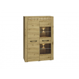 Vitrína - policová dvou dvířková, částečně prosklená se skleněnými policemi, možno dokoupit LED osvětlení za 1080,- kč.