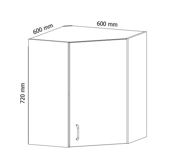 Horní rohová skříňka kuchyně ASPEN G60N - jedno dvířková rohová horní skříňka s jednou policí. Možnost volby pravého nebo levého otevírání dvířek