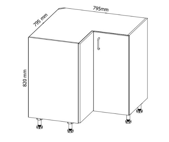 Spodní skříňka rohová kuchyně ASPEN D90N - rohová skříňka s jednou policí.