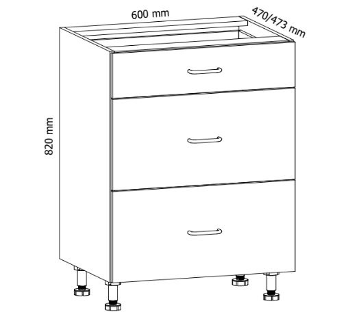 Spodní skříňka kuchyně ASPEN D60S3 - skříňka s třemi šuplíky.