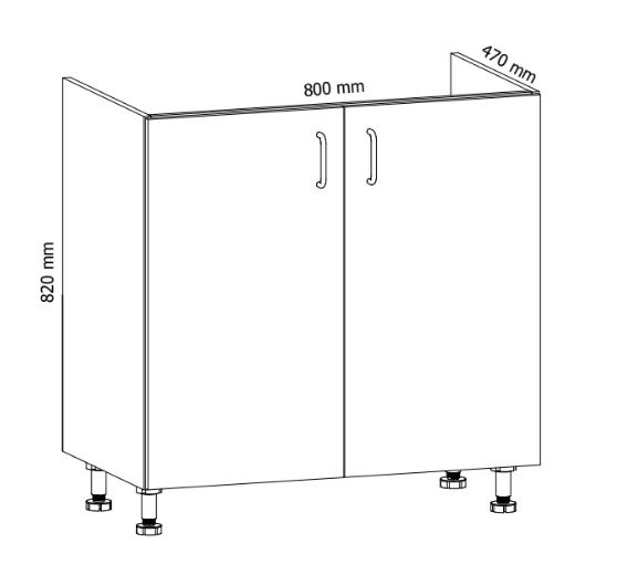 Spodní skříňka dřezova kuchyně ASPEN D80Z - spodní dvou dvířková skříňka, dřezova. Bez police a zadní stěny.