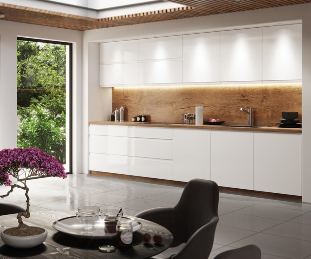 Moderní kuchyňské linky ASPEN určené pro Vás, kteří si ceníte dobrého designu a vysoké funkčnosti. Lesklé čelní plochy v kombinaci s bílým korpusem dodají moderní vzhled Vaší kuchyně. Kuchyňské skříňky jsou dodávany ve dvou barevných variantách. Korpus je vyráběn z kvalitního lamina bílé barvy. Čelní plochy jsou z MDF bílé nebo šedé ve vysokém lesku. Kuchyňské skříňky - ASPEN mají šuplíky mají kovové pojezdy. Dvířka mají bez úchytové otevírání. Horní výklopné skříňky mají plynové písty. Šuplíky i skříňky mají tiché dovírání. Nožky dolních skříněk jsou výškově stavitelné. Dolní skříňky jsou dodávány bez pracovní desky a soklu, které se objednávají samostatně.