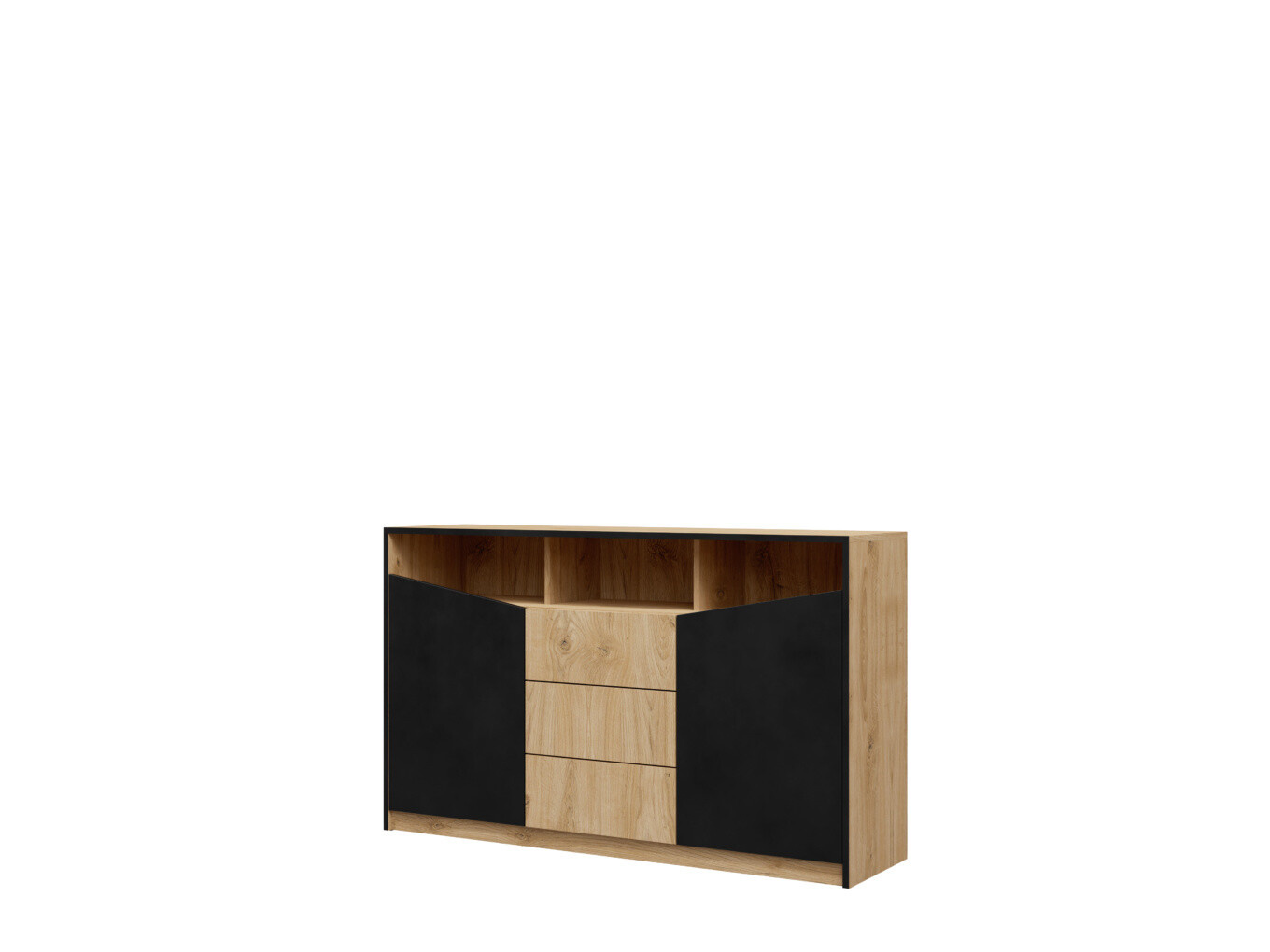 Kombinovaná komoda 3 za systému ASTON - kombinovaná s policemi plnými dvířky, šuplíky uprostřed a otevřenou odkládací nikou
