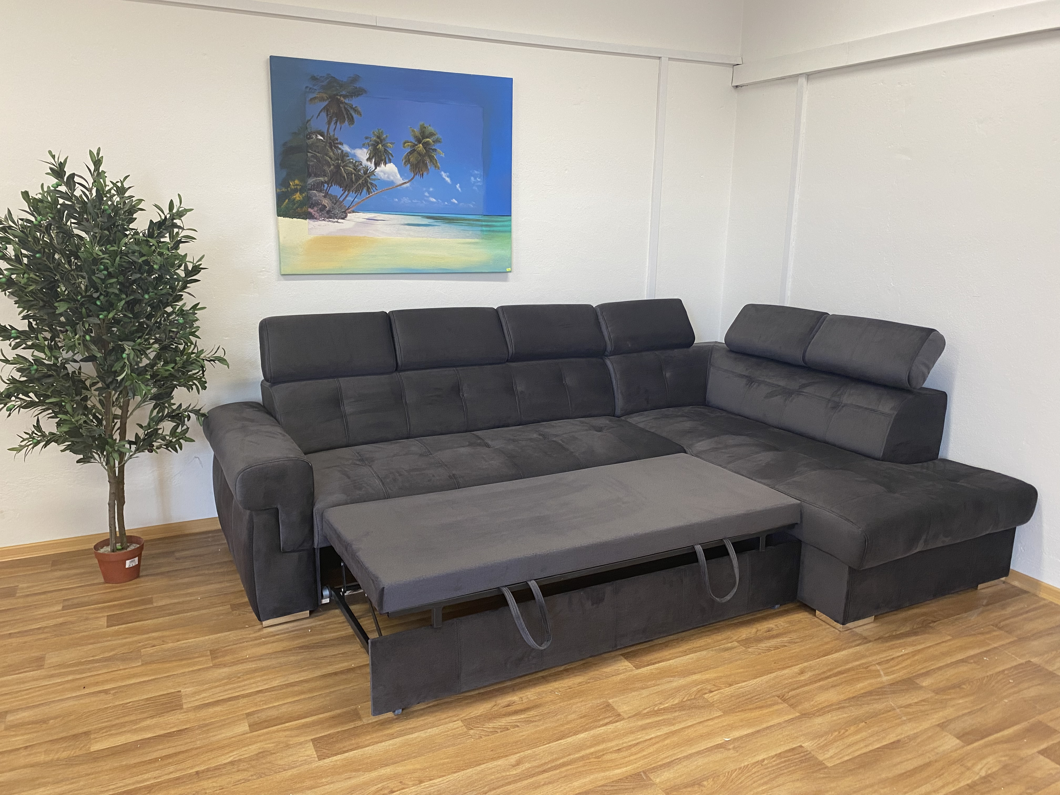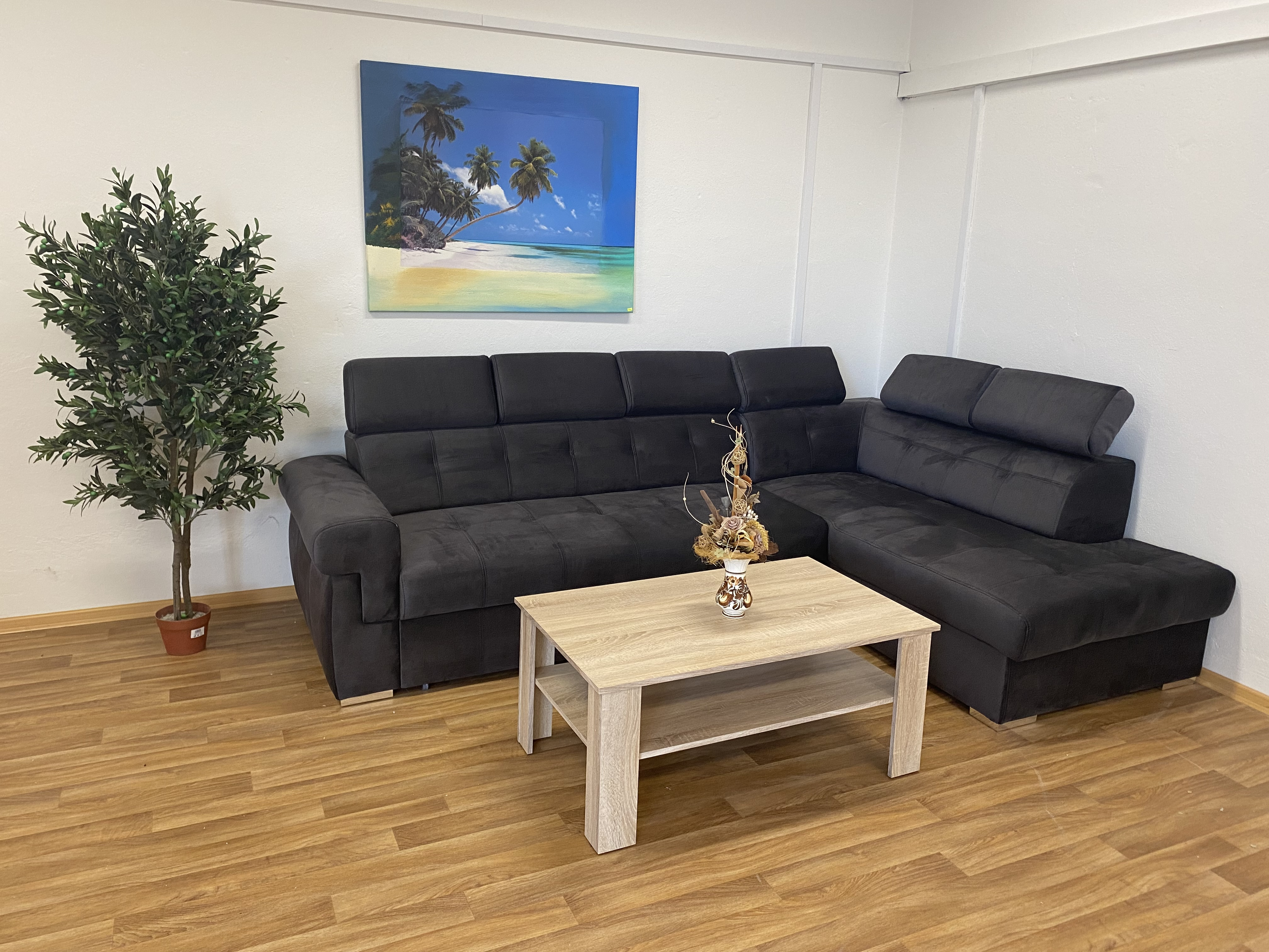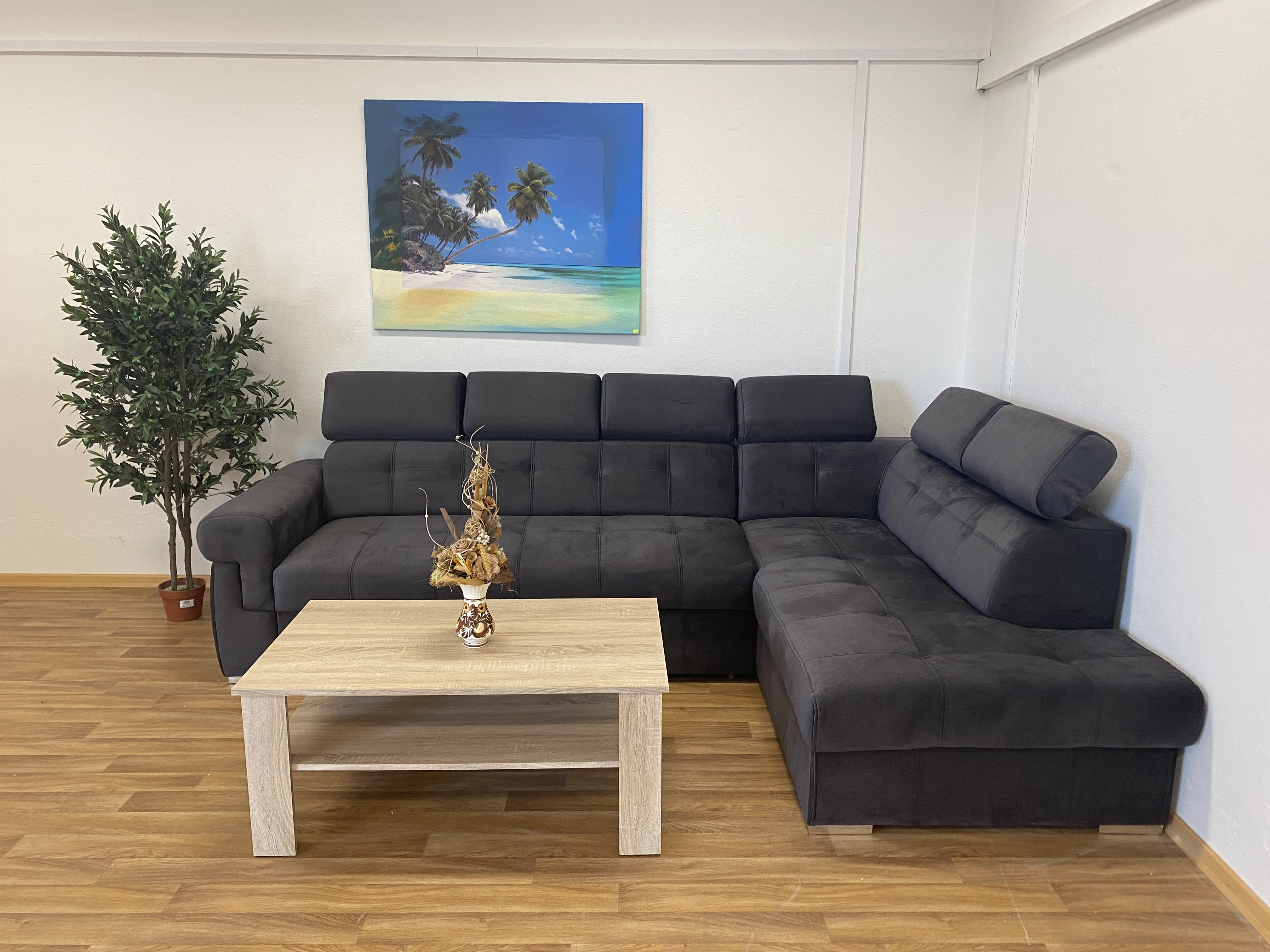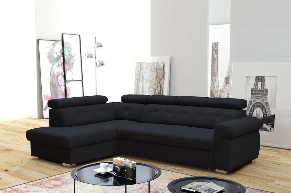 Rohová sedací souprava ATLANTA s výškově stavitelnými podhlavníky. Sedačka je rozkládací s úložným prostorem. Po rozkladu vznikne plocha pro příležitostné spaní o rozměrech 120 x 200 cm. Na výběr máte pravou nebo levou variantu rohu. Sedací souprava je očalouněna antracitovou látkou Element 1, včetně zad sedačky, můžete ji umístit do prostoru. Pohodlí při sezení podpoří polohovatelné opěrky hlavy. Výška sedačky je podle sklopení opěrek hlavy 85 až 100 cm. Sedák je vyplněný studenou HR pěnou a vlnitou pružinou. Možno zvlášť doobjednat i taburet (š. 90 cm, v. 44 cm, hl. 55 cm) ve stejné potahové látce, cena na dotaz u prodejce.