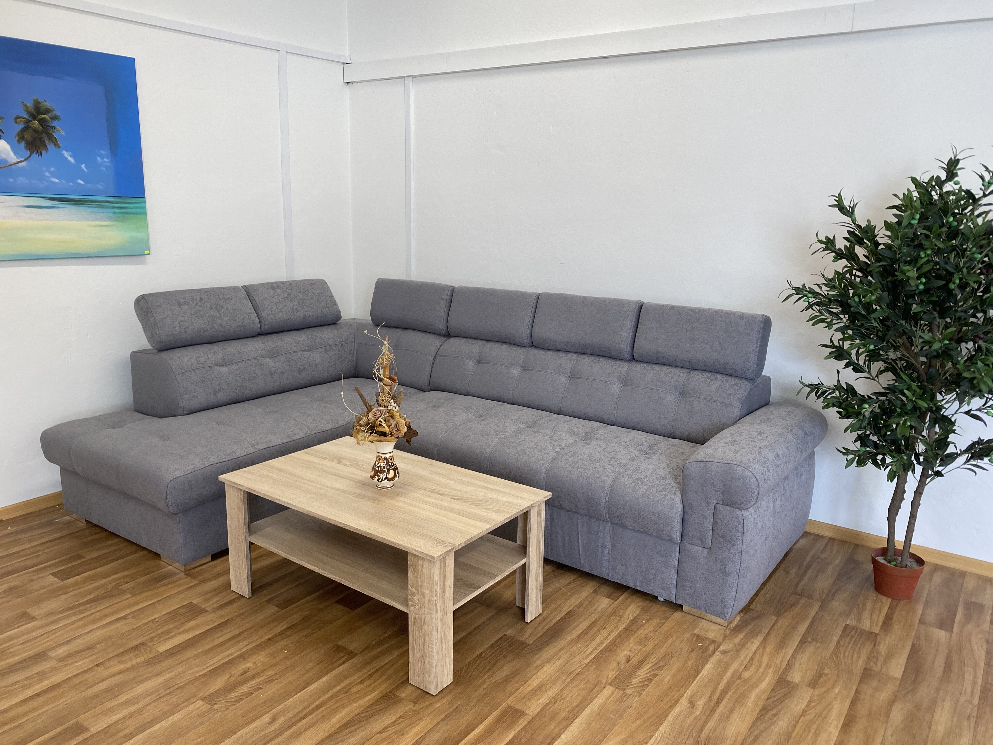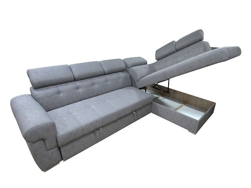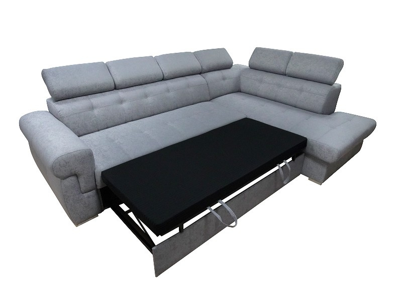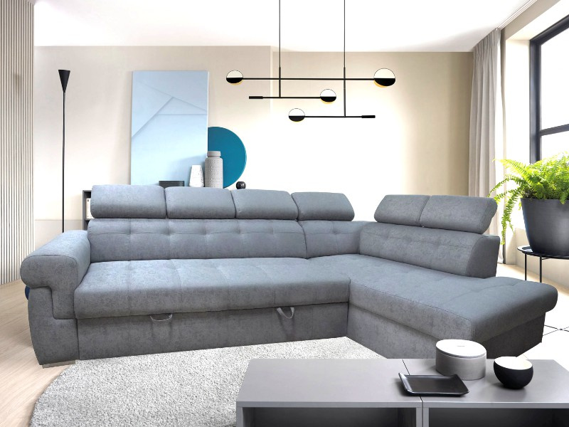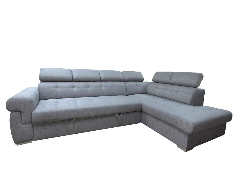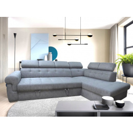 Rohová sedací souprava ATLANTA s výškově stavitelnými podhlavníky. Sedačka je rozkládací s úložným prostorem. Po rozkladu vznikne plocha pro příležitostné spaní o rozměrech 120 x 200 cm. Na výběr máte pravou nebo levou variantu rohu. Sedací souprava je očalouněna šedou látkou Gusto 88, včetně zad sedačky, můžete ji umístit do prostoru. Pohodlí při sezení podpoří polohovatelné opěrky hlavy. Výška sedačky je podle sklopení opěrek hlavy 85 až 100 cm. Sedák je vyplněný studenou HR pěnou a vlnitou pružinou. Možno zvlášť doobjednat i taburet (š. 90 cm, v. 44 cm, hl. 55 cm) ve stejné potahové látce, cena na dotaz u prodejce.