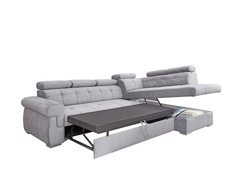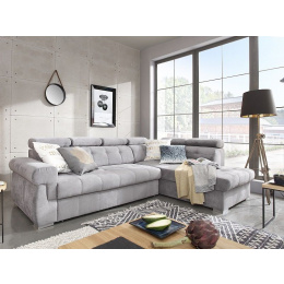 Rohová sedací souprava ATLANTA s výškově stavitelnými podhlavníky. Sedačka je rozkládací s úložným prostorem. Po rozkladu vznikne plocha pro příležitostné spaní o rozměrech 120 x 200 cm. Na výběr máte pravou nebo levou variantu rohu. Sedací souprava je očalouněna světle šedou látkou Gusto 82, včetně zad sedačky, můžete ji umístit do prostoru. Pohodlí při sezení podpoří polohovatelné opěrky hlavy. Výška sedačky je podle sklopení opěrek hlavy 85 až 100 cm. Sedák je vyplněný studenou HR pěnou a vlnitou pružinou. Možno zvlášť doobjednat i taburet (š. 90 cm, v. 44 cm, hl. 55 cm) ve stejné potahové látce, cena na dotaz u prodejce.