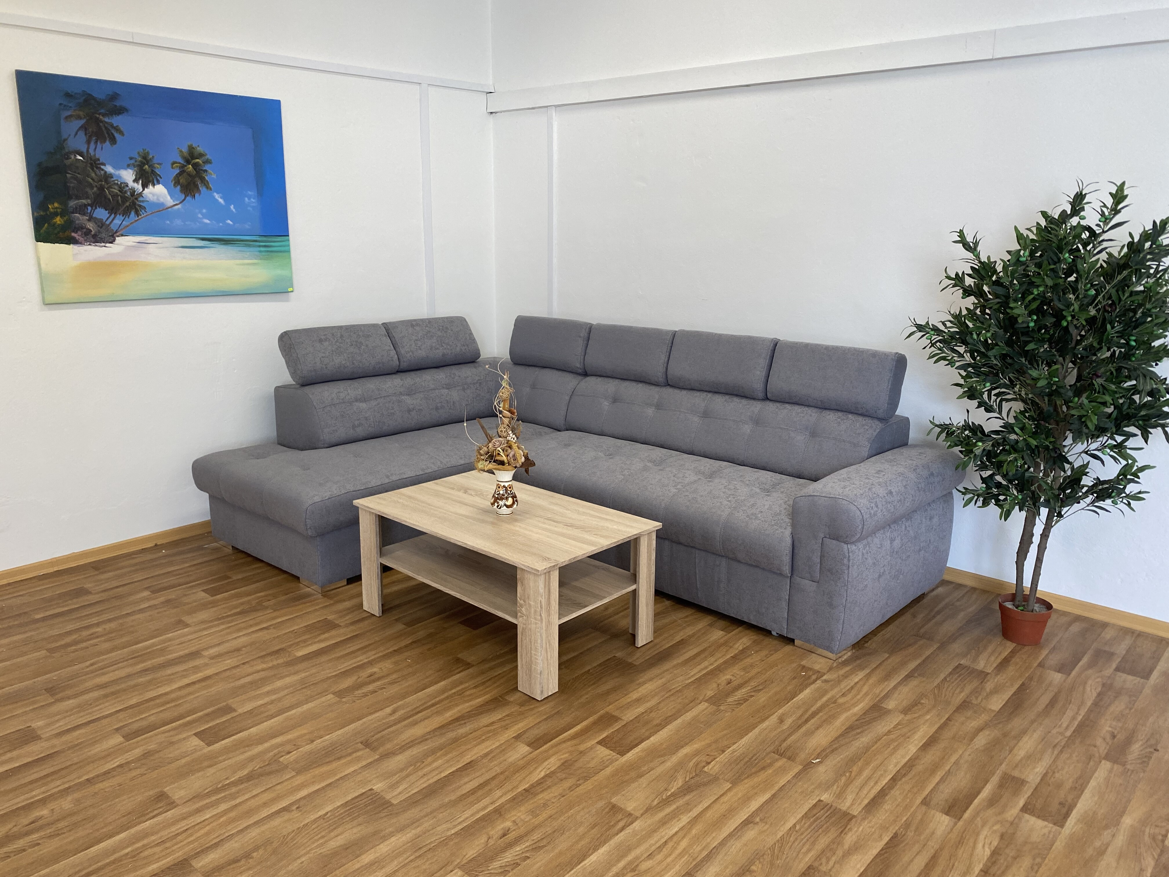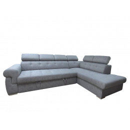 Rohová sedací souprava ATLANTIDA s výškově stavitelnými podhlavníky. Sedačka je rozkládací s úložným prostorem. Po rozkladu vznikne plocha pro příležitostné spaní o rozměrech 120 x 200 cm. Na výběr máte pravou nebo levou variantu rohu. Sedací souprava je očalouněna šedou látkou Gusto 88, včetně zad sedačky, můžete ji umístit do prostoru. Pohodlí při sezení podpoří polohovatelné opěrky hlavy. Výška sedačky je podle sklopení opěrek hlavy 85 až 100 cm. Sedák je vyplněný studenou HR pěnou a vlnitou pružinou. Možno zvlášť doobjednat i taburet (š. 90 cm, v. 44 cm, hl. 55 cm) ve stejné potahové látce, cena na dotaz u prodejce.