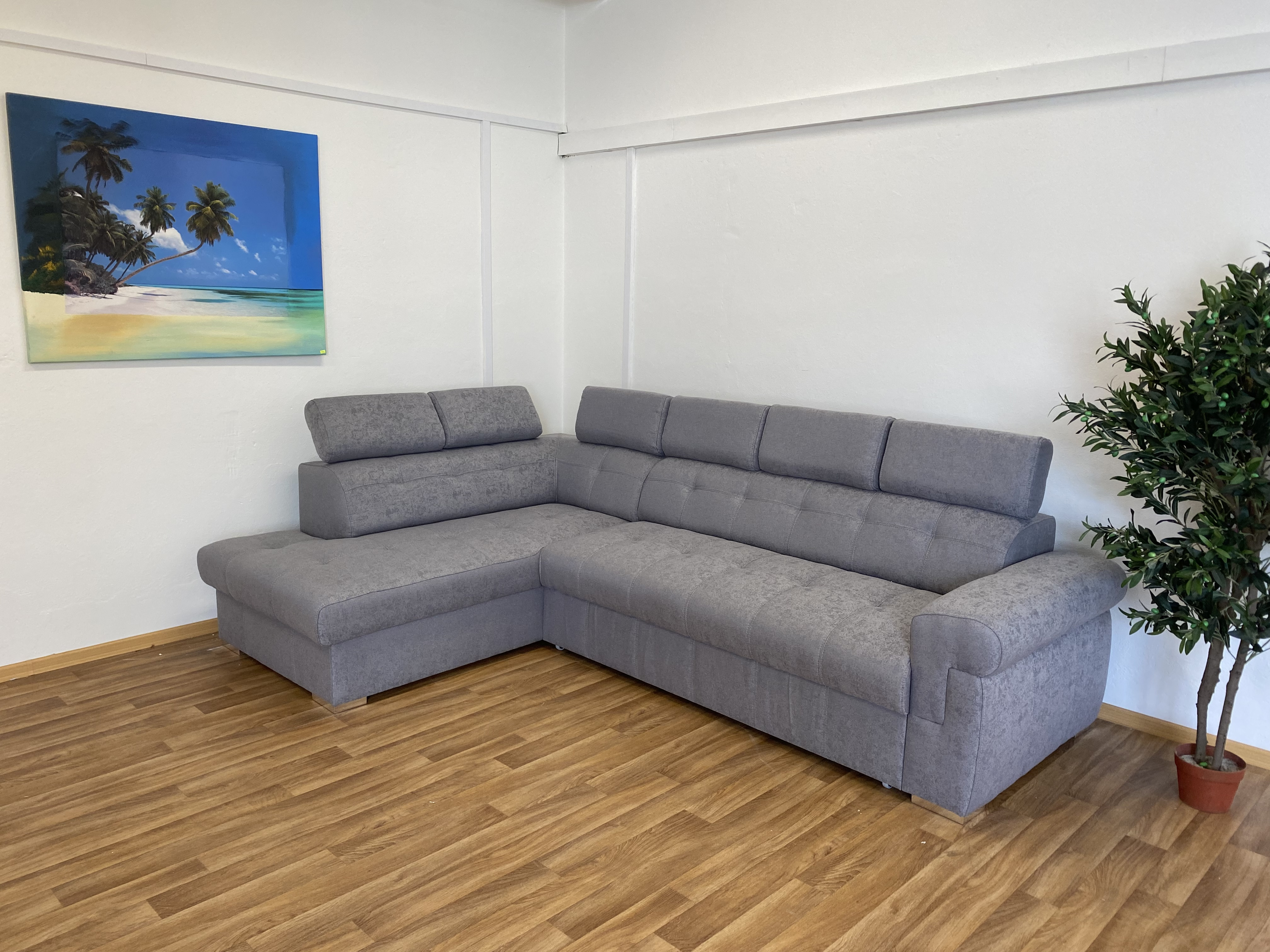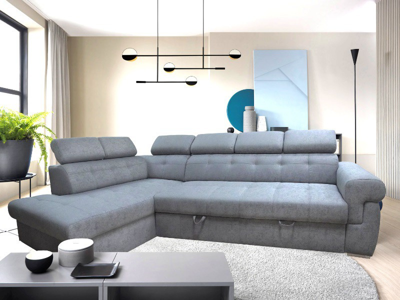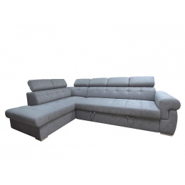 Rohová sedací souprava ATLANTIDA s výškově stavitelnými podhlavníky. Sedačka je rozkládací s úložným prostorem. Po rozkladu vznikne plocha pro příležitostné spaní o rozměrech 120 x 200 cm. Na výběr máte pravou nebo levou variantu rohu. Sedací souprava je očalouněna šedou látkou Gusto 88, včetně zad sedačky, můžete ji umístit do prostoru. Pohodlí při sezení podpoří polohovatelné opěrky hlavy. Výška sedačky je podle sklopení opěrek hlavy 85 až 100 cm. Sedák je vyplněný studenou HR pěnou a vlnitou pružinou. Možno zvlášť doobjednat i taburet (š. 90 cm, v. 44 cm, hl. 55 cm) ve stejné potahové látce, cena na dotaz u prodejce.