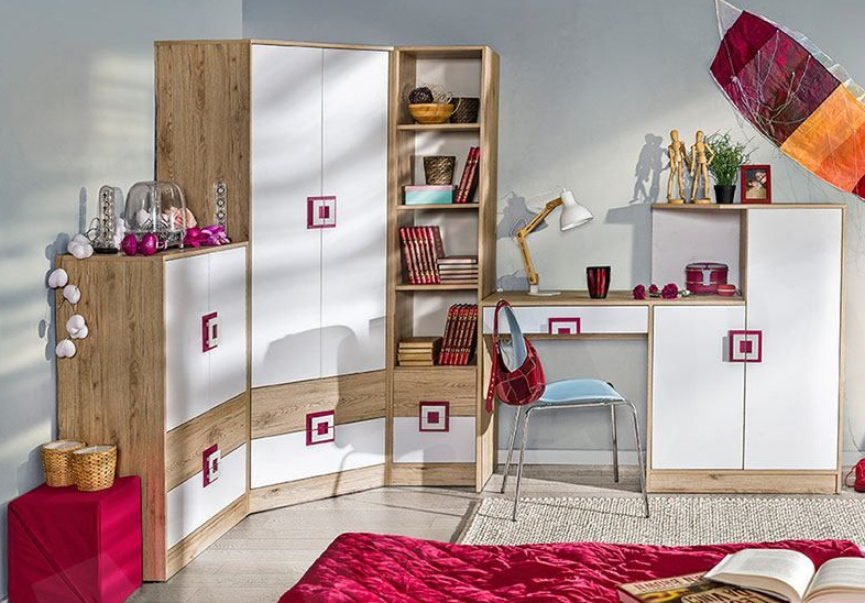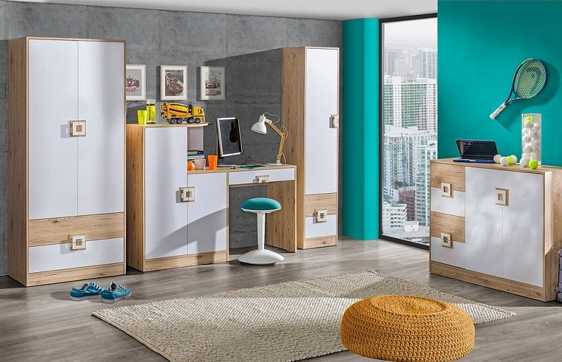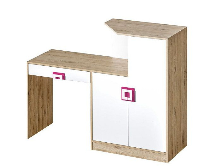 BAFRA je praktický nábytkový systém v atraktivním barevném provedení dub světlý v kombinaci s bílou s barevnými úchyty. Oceňujete minimalismus a jednoduché tvary, pak je tento nábytek určen pro Vás. Hladké čelní plochy, kovové válečkové pojezdy šuplíků, barevné úchyty - dub světlý, růžová, šedá, tyrkysová. K dispozici máte 14 prvků, které Vám umožní lehce a moderně zařídit studentský nebo dětský pokoj.
