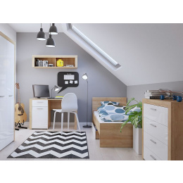 Osloví vás pouze dokonalý moderní design nábytku? Pak si jistě zamilujete novou kolekci BALDER. Jednoduchý styl a univerzální kombinace barev dub riviéra a bílý lesk budou základem pro stylové bydlení. Originálními prvky systému BALDER jsou zesílené přední hrany korpusu a kontrastní elegantní úchyty. S tímto nábytkem můžete s chutí vybavit ložnici a obývací či studentský pokoj.