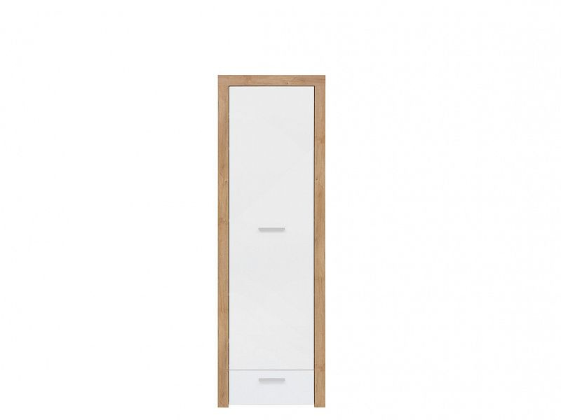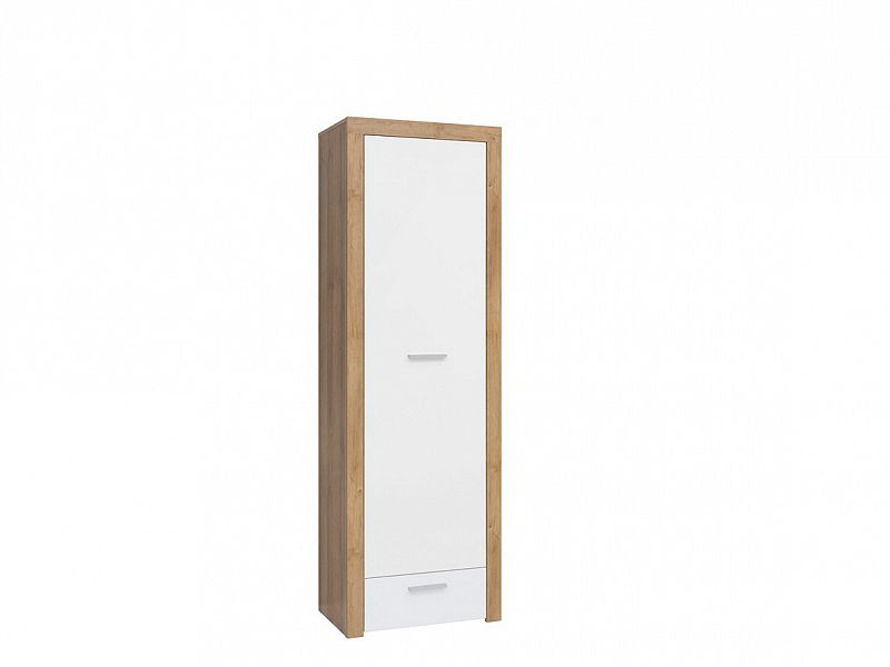 Úzká skříň ze systému BALDER - plná dvířka s policemi, dole šuplík