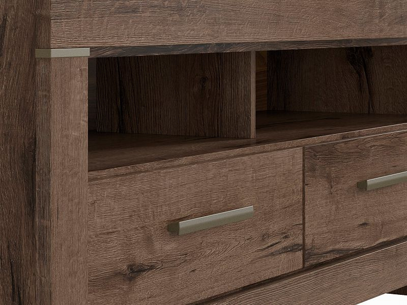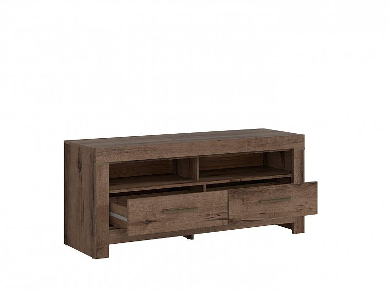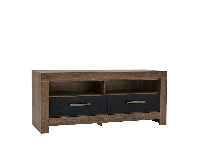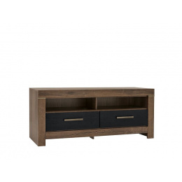 televizní stolek - dole dva šuplíky, nad nimi otevřená odkládací nika