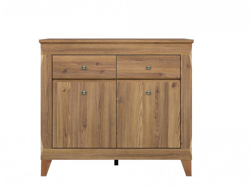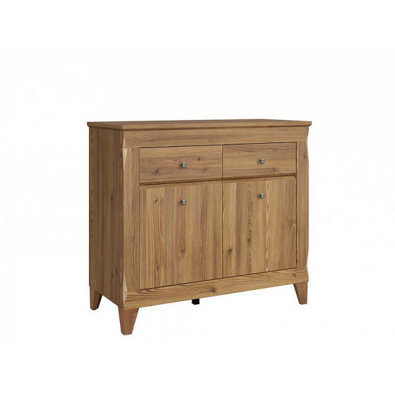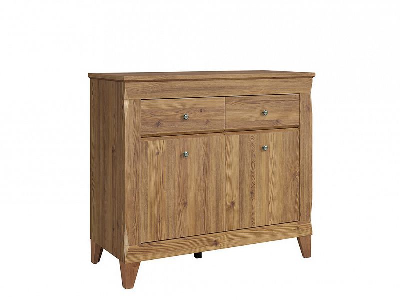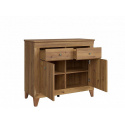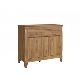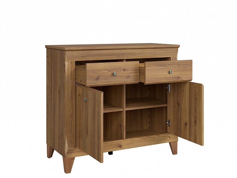 Komoda KOM2D2S ze sektoru BERGEN - s plnými dvířky, policí a šuplíky, které je vybaveny pojezdy HETTICH Quadro Silent System s tlumeným dojezdem a panty FGV s brzdou.