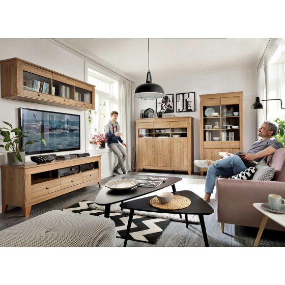 Zajímavá elegance s originálním designem v příjemné teplé barvě dřeva modřín sibiu zlatý – to je systém Bergen. Jedinečný design nábytku dodávají detaily v podobě vyšších nohou, kovových úchytek a zkosených hran na bocích. Jednotlivé složky kolekce Bergen jsou opatřené tichým dovíráním dvířek, což zpříjemňuje jejich používání. Systém BERGEN je vyroben z kvalitního lamina v barevném provedení modřín sibiu zlatý.