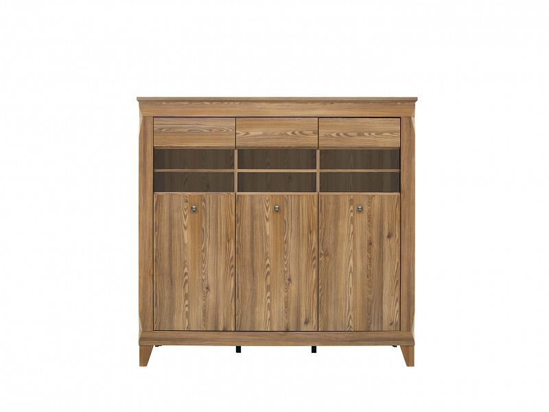 Zajímavá elegance s originálním designem v příjemné teplé barvě dřeva modřín sibiu zlatý – to je kolekce Bergen. Jedinečný design nábytku dodávají detaily v podobě vyšších nohou, kovových úchytek a zkosených hran na bocích. Jednotlivé složky kolekce Bergen jsou opatřené tichým dovíráním dvířek, což zpříjemňuje jejich používání.